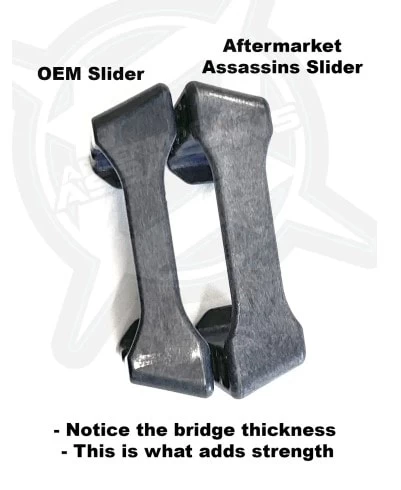 - These custom molded AA primary sliders have a thicker bridge to add strength to the slider. This keeps them from breaking which is a well known issue with the thinner bridge OEM sliders.