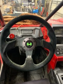 Honda Talon Steering Quickener. The Hess Motorsports Talon Steering quickener installs in minutes without the need for any modification. The stock steering wheel is able to mount directly to the steering quickener. This upgrade is easily one of the most important upgrades for aggressive drivers! Our V2 steering quickener has been redesigned to reduce driver input making it even easier to turn!