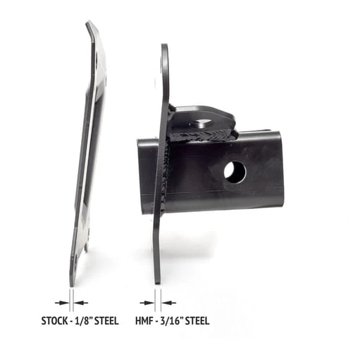 The HMF HD 2″ Receiver Hitch is a beefy 2″ off-road hitch receiver that’s built from 3/16″ steel and features a heavy-duty gusset plate that mounts directly to the stock rear plate. Powdercoated solid black for durability, the hitch receiver works on all Polaris RZR XP Turbo S models featuring 12mm mount holes. Ball mount and ball not included.