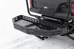 Durable Storage Solution! Rough Country’s Rear Hitch Cargo Rack is designed to fit a 2″ hitch receiver and can be easily mounted and removed using the included hitch pin. Multiple hitch pin locations allow you to choose the best placement on your vehicle to keep it clear of road obstacles while remaining at an easy loading height. Crafted from 14-gauge steel, the cargo rack’s powder coat finish helps prevent rust, chipping, and corrosion, so your rack looks new season after season.