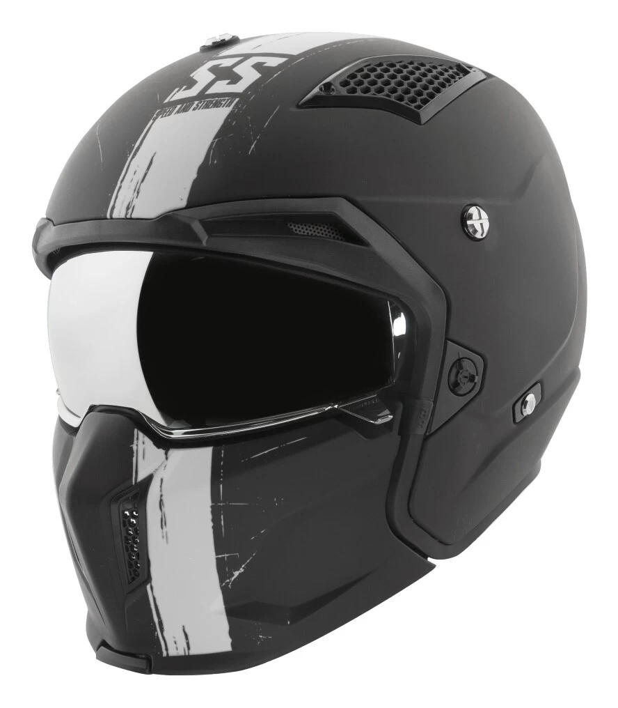 The meat of the helmet is the removable chin bar for full face riding. This included accessory is quickly swapped in and out with an easy lever pull per side. It features a mouth vent of its own with aggressive cues to seamlessly integrate with the 3/4 portion of the SS2400. The chin bar’s locking mechanism uses steel hardware for a safe, solid fit. No matter the identity of your ride, the Tough As Nails delivers versatility and an aggressively incognito style to match.